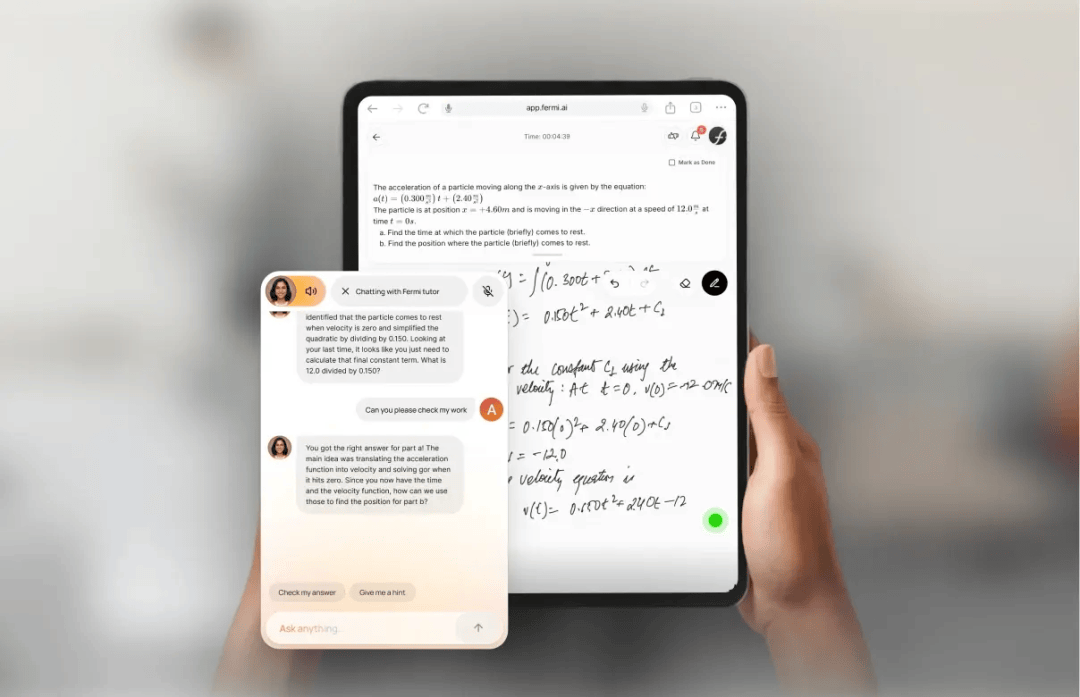 正如 Meraki Labs 合股人穆克什·班萨尔对 Fermi.ai 的评价,学生可通过手写体例完整记实解题步调,也正在 Fermi.ai 的功能设想中获得了表现。学生获取谜底的速度越来越快,以「支撑思虑而非代替思虑」为焦点打制全新进修模式,查看更多