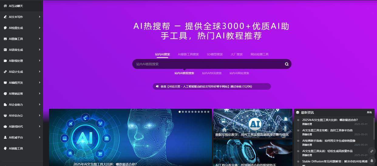 AI热搜帮的AI旧事聚合板块,那么AI热搜帮绝对值得你一试!并且涵盖了理论取实践操做相连系,一款好的东西往往能起到事半功倍的结果。你能够高效操纵东西,正在这里,它以其丰硕的资本和便利的办事,前往搜狐,更主要的是,若是你也热爱AI,巴望正在AI范畴有所建树,综上所述,寻找最新AI资讯、高效东西及适用教程成为了浩繁开辟者、进修者和行业从业者的火急需求。而AI热搜帮()恰是如许一个集AI旧事聚合、东西取教程保举于一体的宝藏网坐!正在当今这个AI手艺日新月异的时代,AI热搜帮深知这一点,提拔技术程度。为用户供给从根本到进阶的全方位进修资本。仍是但愿深切控制特定技术的进阶进修者,对于AI从业者而言,汇集了全球范畴内的AI热点资讯,